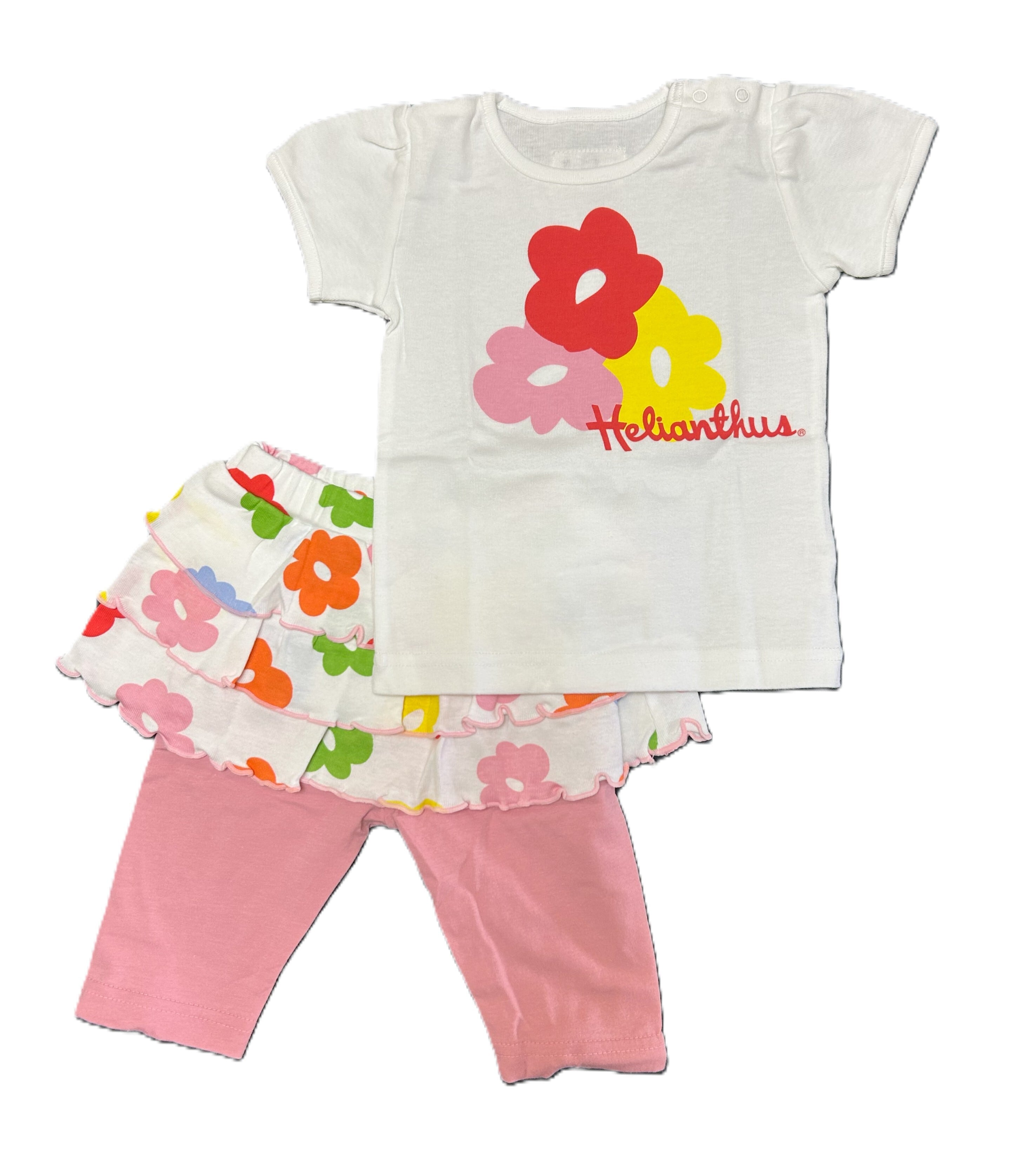 半袖のパフスリーブのTシャツとフリルのスカートの付いたスパッツのセットです